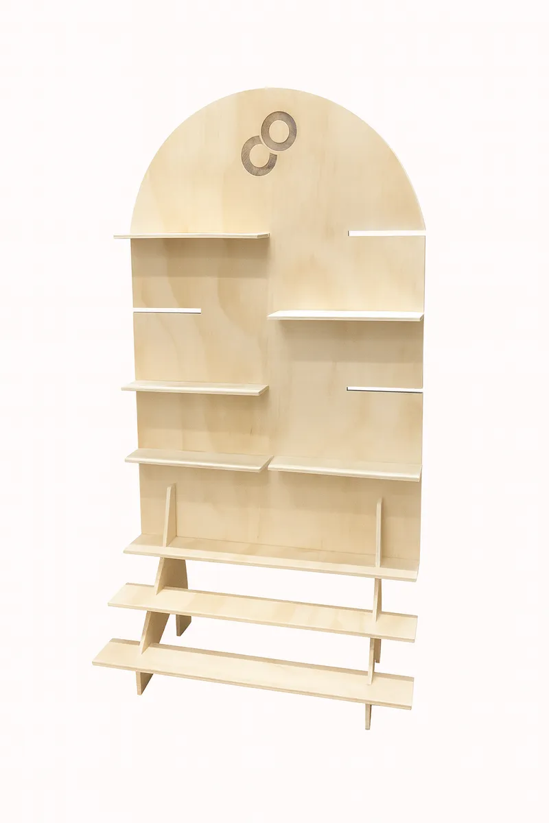 Este exhibidor de madera de pino contrachapada de 12 mm de espesor es una opción resistente, práctica y personalizable para destacar tus productos en tiendas, ferias o showrooms. Su diseño con repisas amplias permite organizar y mostrar artículos de forma ordenada y atractiva, mientras que su estructura firme asegura durabilidad en el uso diario.