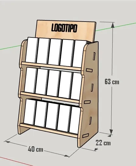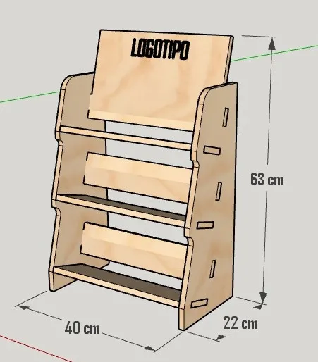 Este exhibidor de madera barnizado es ideal para quienes buscan una presentación ordenada, moderna y natural.