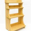 Exhibidor de madera natural ideal para mostrar productos artesanales, bolsas, saquitos o cosmética natural en mostradores, ferias y tiendas.