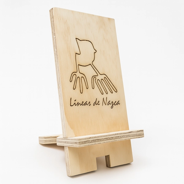 Soporte de Madera para Celular con Grabado Líneas de Nazca